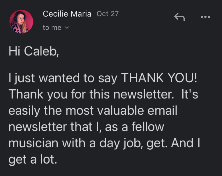 Each Monday, I send an email to musicians with five things from the internet that I found helpful. It’s called 5 Things To Help You Keep Going.